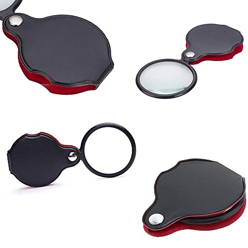 5 Pezzi Lente d'Ingrandimento Pieghevole e Tascabile, Lente d'Ingrandimento Portatile, Lente d'Ingrandimento Pieghevole in Pelle, 8x Lente di Lettura Portatile per Lettura, Artigianato, Etichette