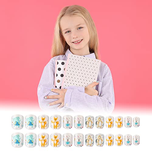 24 pezzi Libreria di animali Unghie per bambini Pre-colla Unghie corte quadrate per ragazze Elefante Leone Pecora Orso Modello Unghie finte Consigli Ragazze Bambini Decorazione di arte del chiodo