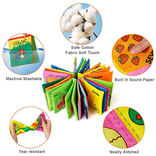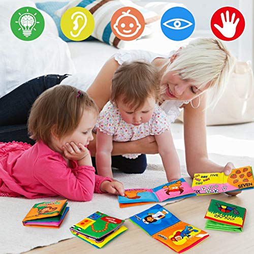 6 Pezzi Libro Stoffa Bambini, MOOKLIN ROAM Libro Tattile Interattivo Cognition Libri Tessuto Suono Infantile educativo Rattle Toy Passeggino per Bambini Neonati