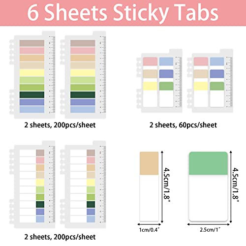 Kit di 920 etichette adesive: riceverai 920 linguette con dimensioni 4,5 x 1 cm, 4,5 x 2,5 cm. Le schede per libri includono 4 set di 10 colori (ogni set 200 pezzi) e 2 set di 6 colori (ogni set 60 pezzi). Quantità sufficiente di note adesive per soddisfare le vostre esigenze quotidiane.