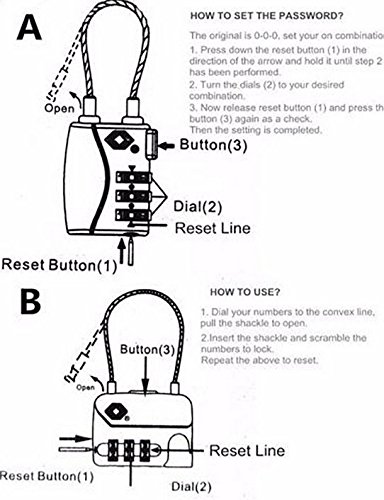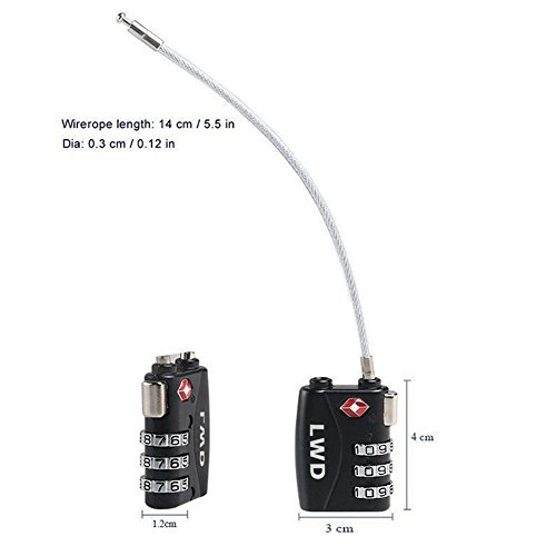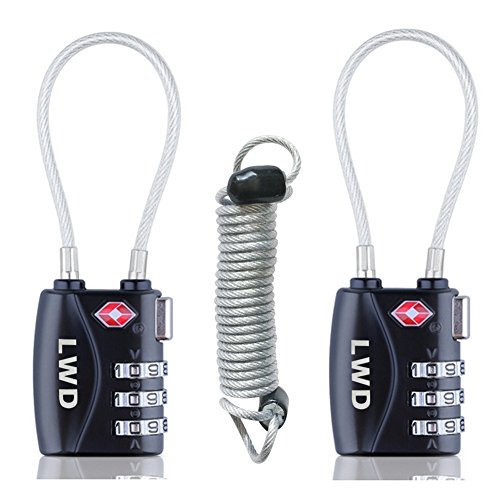 LWD 2 pezzi TSA Lucchetti per i bagagli, 3 cifre combinazione,sicurezza lucchetto,Cavo di acciaio retrattile (massimo telescopico 100 cm),per la sicurezza e sicurezza di viaggio,bagagli, palestra