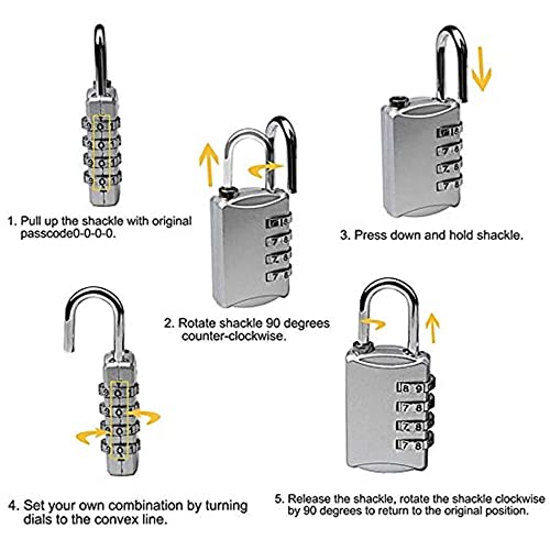 ◆Facile da usare: ogni lucchetto a combinazione è dotato di istruzioni chiare. Imposta o reimposta la tua combinazione in 4 passaggi, utilizza il metodo può attraverso lo studio della confezione del prodotto / Introduci le immagini del prodotto sull'apprendimento.