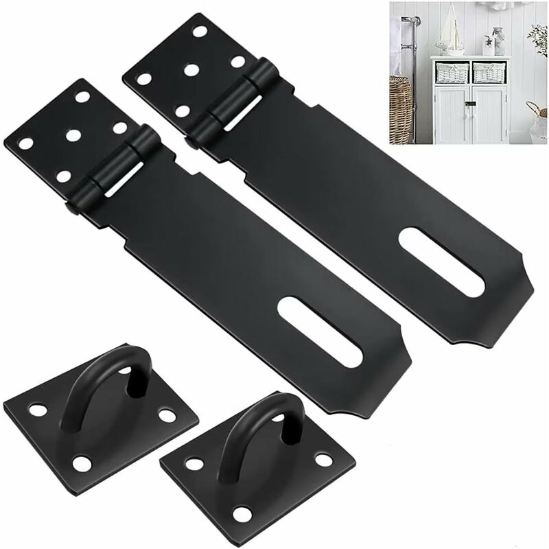 Peso: 0,3 kg Dimensioni: 127*39*2 mm Colore: come mostrato Acciaio inossidabile 304 di alta qualità: Le chiusure di sicurezza sono realizzate in solido acciaio inossidabile 304, durevoli, pulite e prive di sbavature, ruggine e corrosione, resistenti all'usura e di lunga durata La cerniera del lucchetto è facile da installare, basta utilizzare il montaggio incluso viti per fissarlo per fissarlo. Il design più spesso aumenta la protezione della casa e dell'ufficio Design liscio e raffinato: Il lucchetto è completamente lucidato, il che è semplice e raffinato. La finitura nera opaca ha un aspetto migliore e si adatta perfettamente alla casa moderna Multifunzionale: 2 chiavistelli di sicurezza, i chiavistelli del cancello sono adatti per porta d'ingresso, porta del garage, scatola di legno, armadietti per finestre, cassetti, armadi ecc