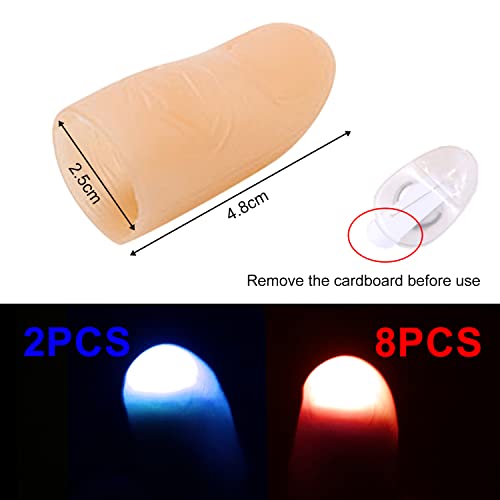 10 Pezzi di luci magiche per Pollice, luci Luminose per Dita, coperture per Dita Giocattolo, Puntelli magici luci per Dita finte, per spettacoli di magia, Feste, tifo, ECC. (Luce Rossa, Luce Blu)