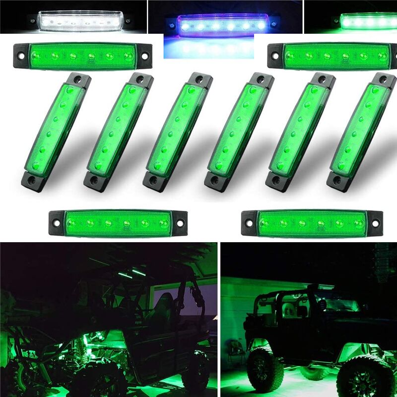 Facile da installare e cablaggio - Praticare i fori per fissarli e fissarli dove si desidera, collegare il filo della batteria al filo del fusibile all'interruttore a levetta, quindi collegare uno dei fili dell'interruttore al cavo positivo sulla lampada. Collegare a terra il filo nero e il gioco è fatto. 【Applicazione】Può essere utilizzato per luci rock a LED, luci per vano ruota parafango, kit luci inferiori a LED, golf cart, Jeep Wrangler, RZR, fuoristrada, F150, F250, motoslitte e altre luci decorative. 【Dettagli del prodotto】Verde. Ogni lampadina misura 3,8 x 0,8 x 0,4. Ci sono 6 LED all'interno di ogni lampadina. La lampadina è progettata per durare 50.000 ore, 50 volte di più rispetto alla lampadina originale. 【Basso consumo energetico】 Quando si raggiunge la stessa luminosità delle lampadine tradizionali, il consumo energetico è solo del 6% rispetto alle lampadine tradizionali .