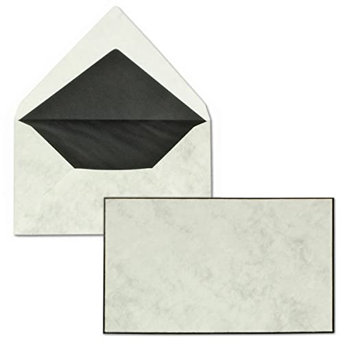 50 pezzi lutto Set di schede grigio marmorizzato con tristezza di bordo & gefüttertem busta//, taglia: 11,4 x 19,5 cm