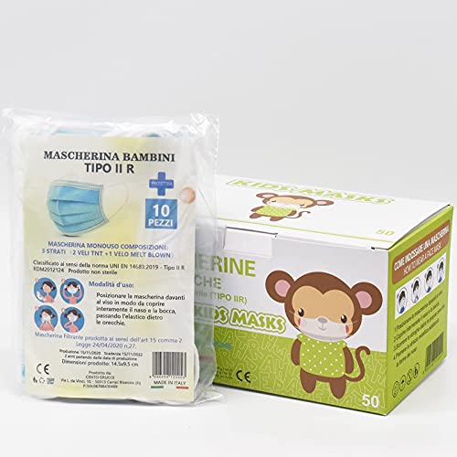 50 Pezzi MADE IN ITALY Mascherine Bambini Colorate protettiva colorata personale 3 strati CE tipo IIR, Nasello Regolabile, Pacchi individuali (Viola)