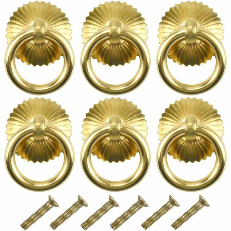 Contiene 6 maniglie per mobili in oro e 6 viti, il diametro interno dell'anello è di 30 mm. Anello per maniglia per mobili vintage, realizzato in ottone resistente all'usura per una lunga durata. Facile da installare, basta usare la casa gadget da installare facilmente. Perfetto per armadi, scrivanie, armadi, scarpiere e altri mobili .