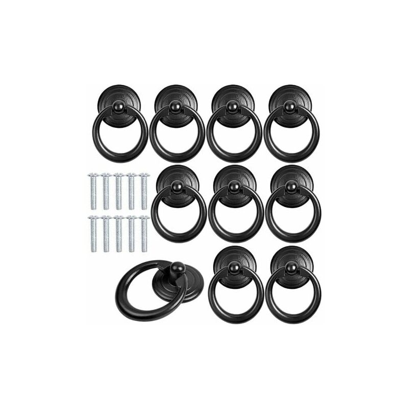 Materiale - Le maniglie ad anello sono realizzate in lega di zinco, robuste e resistenti alla corrosione. La sua superficie è zincata e verniciata di nero, liscia e uniforme. Pomelli per porte durevoli per un uso a lungo termine. Facile da tirare: il design rotondo dell'anello di trazione facilita l'apertura dei cassetti e delle ante dell'armadio, basta tirare delicatamente l'anello, anche per i bambini piccoli. 【Semplice ed elegante】 Questi anelli per maniglie per cassetti sono semplici nello stile, eleganti e generosi, mai antiquati, mobili in stile moderno o retrò possono essere abbinati, come comodino, mensola, scatola di legno, ecc. 【Sicuro da usare】 La manopola dell'anello del mobile ha una superficie liscia senza sbavature o spine taglienti. L'anello del pulsante aderisce naturalmente alla superficie del mobile e non sporge, riducendo il potenziale rischio per la sicurezza di impatto accidentale da parte di bambini o anziani. 【10 pezzi】10 parti dell'anello dell'armadio da