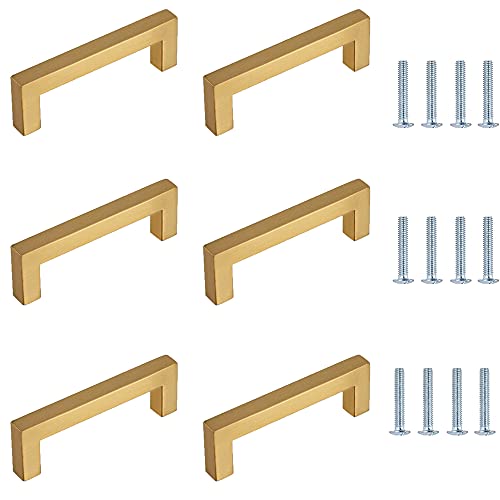 6 Pezzi Maniglie per Ante Armadio, Maniglia del Cassetto, Maniglie per Mobili, in Acciaio Inossidabile, Distanza Fori 128mm, con 12 Viti, per Cucina, Camera da Letto, Bagno, Ufficio (D'oro)