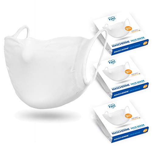 FHC 9 Pezzi maschera per Naso e Bocca Lavabile a 60° Riutilizzabile con tasca per filtro (Bianca)