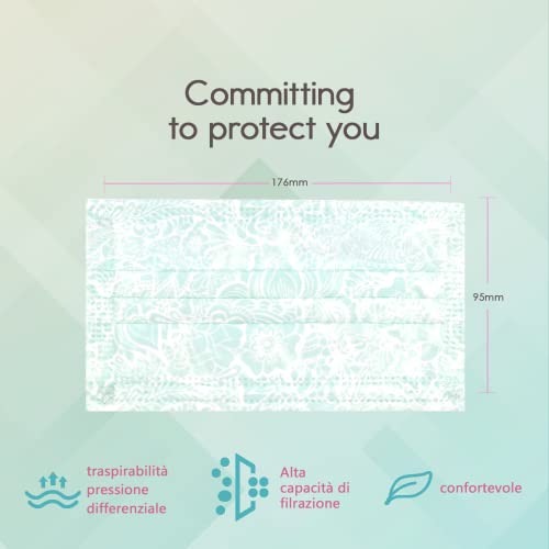 50 Pezzi Mascherine Chirurgiche Colorate, Mascherine Chirurgiche, MADE IN ITALY a 3 Strati CE Tipo IIR, Nasello Regolabile,Ultraleggere (Multicolore 5)