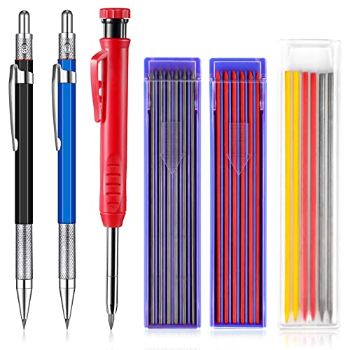 3 Pezzi Matita Carpentiere Matite da Cantiere Professionale Matite Falegname con Temperamatite e 3 Scatole di Ricariche, Matita Muratore per Marcare i Fori Profondi e il Disegno
