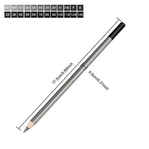 Set di matite professionali per schizzi di disegno - Un totale di 24 tipi di livelli di durezza, in grado di soddisfare ogni tipo di esigenza. Compresi 14B, 12B, 11B, 10B, 9B, 8B, 7B, 6B, 5B, 4B, 3B, 2B, B, F, HB, H, 2H, 3H, 4H, 5H, 6H, 7H, 8H, 9H