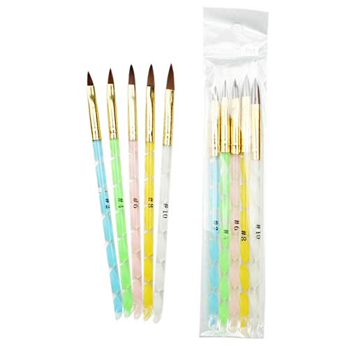 5 Pezzi Matita per Unghie di Cristallo,Penna per Nail Art,Pennelli per Penne per Intaglio Polvere Liquida Fai da te, Set di Strumenti per Nail Art per Pennelli, n. 2/4/6/8/10 e Strumenti Peeling