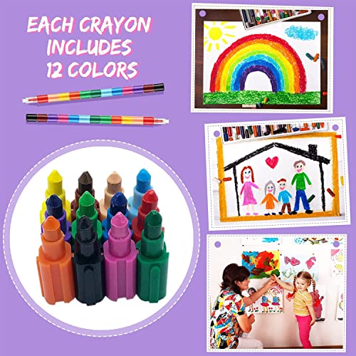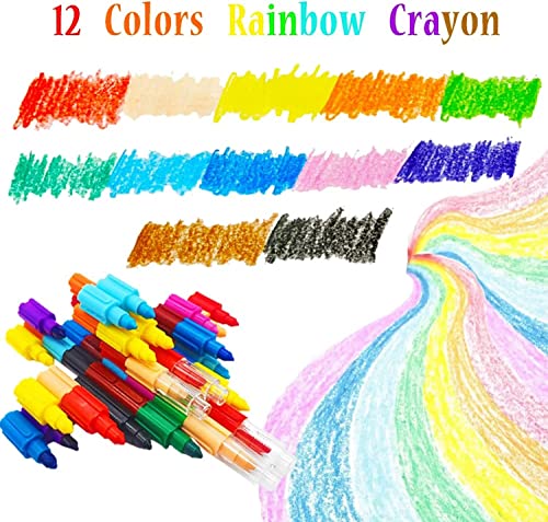 Gesso impilabile: è possibile ottenere 24 matite colorate impilabili in 12 colori, ogni matita arcobaleno è composta da 12 piccole matite colorate corte in diversi colori, ogni piccola matita colorata può essere facilmente rimossa e impilata a seconda della vostra sequenza di colori o lunghezza preferita. Può essere impilato sia verticalmente che orizzontalmente