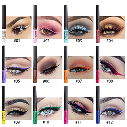 REGALO PERFETTO PER FIDANZATA / MOGLIE / DONNA: gli eyeliner liquidi con pigmento schiarente color arcobaleno a 12 colori sono ideali per feste, spettacoli di cosmetici, spettacoli dal vivo, serate di ballo, feste da ballo, trucco da sposa e trucco quotidiano, che ti rende l'attrazione in qualsiasi occasione. Con una confezione unica, sarebbe il regalo perfetto per la tua ragazza, migliore amica, moglie, amante.