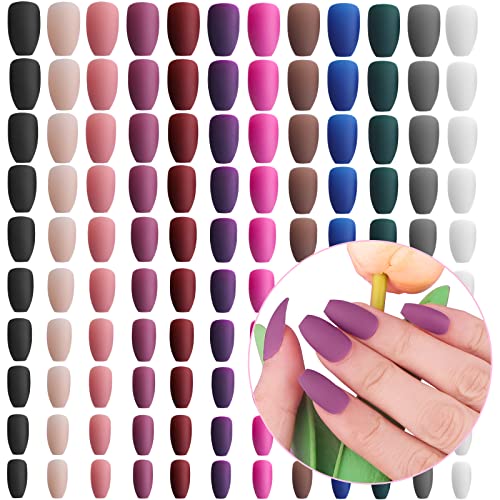 288 Pezzi Matte Press On Nails, EBANKU Unghie Finte Corte Acriliche Copertura Completa Unghie Finte Bara, 12 Colori Punte Unghie Ballerina Artificiale Decorazione Unghie per Donne