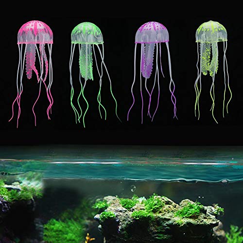 4 Pezzi Meduse Modello, Acquario di Simulazione Meduse Artificiali Silicone Serbatoio di Pesce Galleggiante Meduse Fluorescenti per Acquario Decorazione paesaggistica