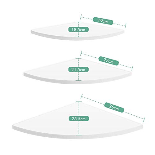 3 pezzi Mensola ad Angolo, mensole a Muro angolari Colore Bianco, Mensola da Parete Scaffali Mobili a Muro angolari Portata 5 kg per Camera da Letto, Soggiorno Home Office Decor