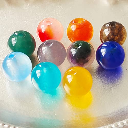 100 Pezzi Mescolano Perline Pietre Semipreziose, Infilatura Perline Colorate, Perline Pietre Preziose Rotonde,per Creazione Gioielli, Bracciali, Ciondoli, Artigianato, 10 Colori, 10 mm
