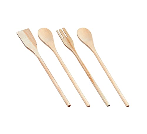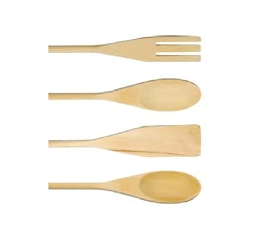 SET 4 PEZZI MESTOLI DA CUCINA IN LEGNO ASSORTITI 2 CUCCHIAIO 1 PALA 1 FORCHETTA UTENSILI CUCINA IN LEGNO NATURALE