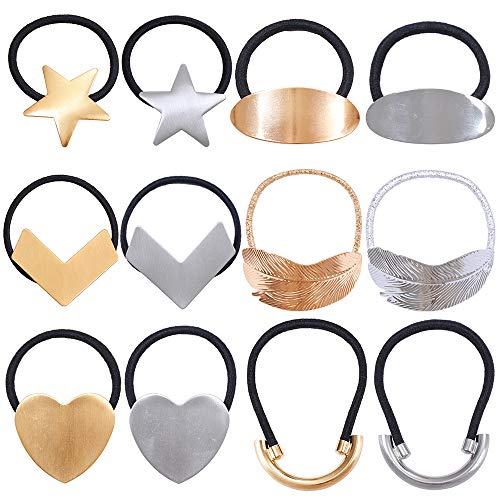 12 pezzi di metallo coda di cavallo fasce elastiche per capelli per le donne ragazze geometriche elastiche dei capelli polsino avvolgere i capelli cravatte corda delle signore dei capelli fasce