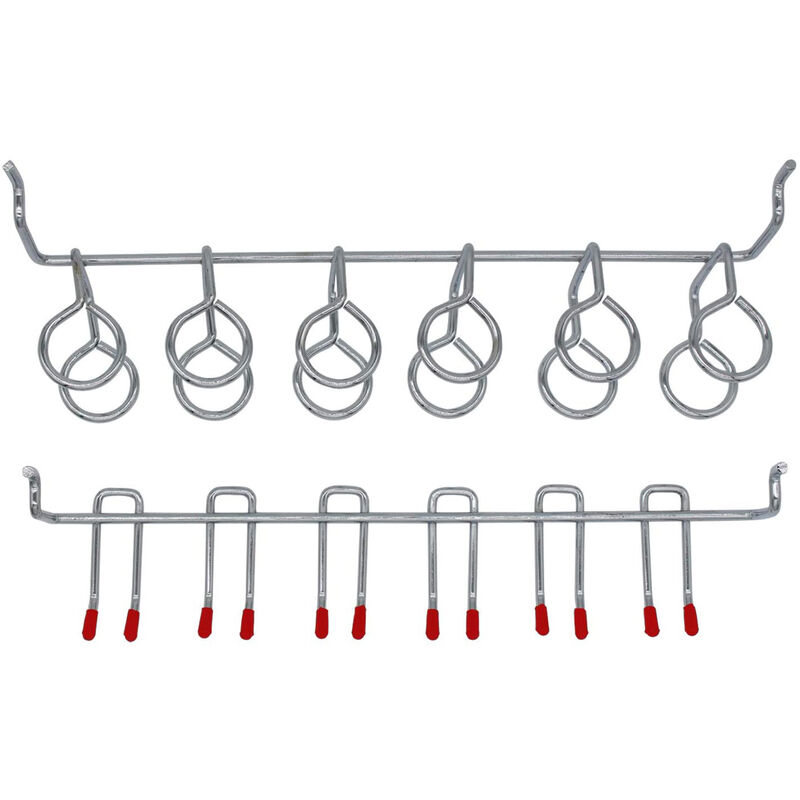 Un'ampia varieta di pioli in metallo per pegboard ti aiuta a organizzare per il banco da lavoro, diversi tipi di ganci e organizzatori, funzionali per una vasta gamma di applicazioni sospese. Caratteristiche: Include 15 diversi tipi di ganci e organizzatori, ganci dritti, ganci curvi, ganci angolati, porta attrezzi multiuso e contenitori per pannelli forati piu 60 pezzi di serrature per pioli tutti insieme come 140 pezzi di assortimento di ganci per pannello forato, e completamente funzionale per una vasta gamma di appendere applicazioni. Adatto per pannelli forati da 1/8 "e 1/4" con spaziatura di 1 pollice. Le serrature per pioli in metallo incluse nella confezione vengono utilizzate per mantenere i ganci sulla tavola, basta agganciare i ganci per pioli e bloccarli nei fori del pannello forato su ciascun lato, i ganci saranno bloccati nel pannello forato. I pioli per pannello forato sono realizzati in ferro di alta qualita, robusti e durevoli. Il processo di galvanica garantisce che