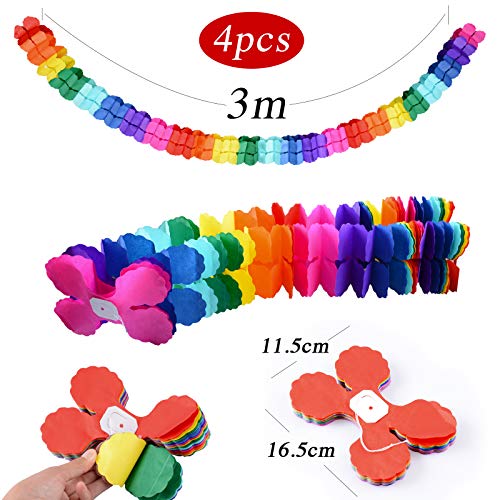 4 Pezzi 3 Metri Ghirlande di Carta Multicolore Quadrifoglio Festoni Colorato per Festa di Compleanno Laurea Matrimonio Battesimo Carnevale Natale