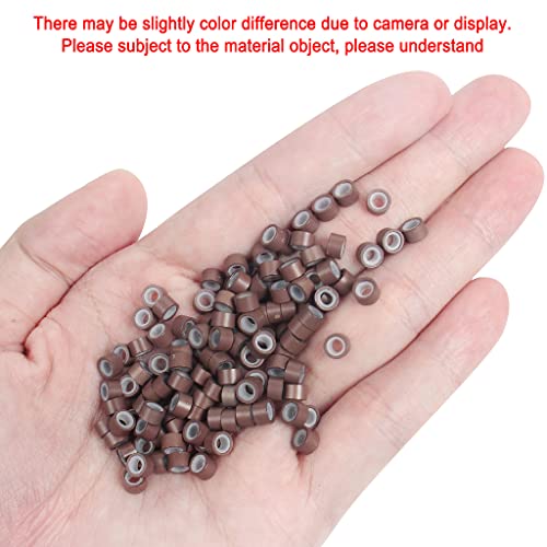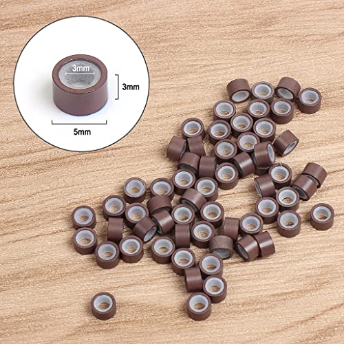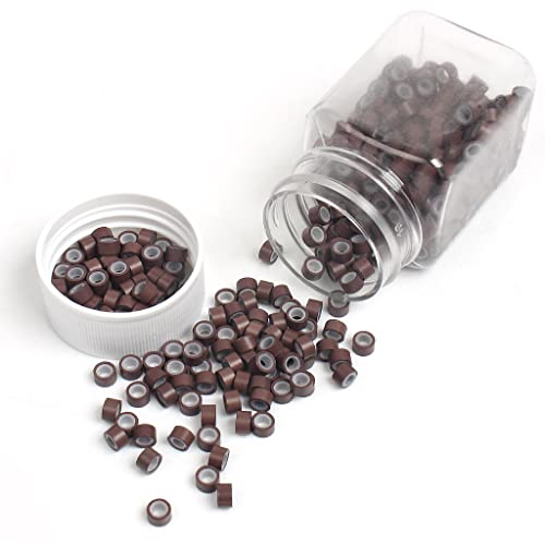 500 pezzi micro anelli 5mm bordati in silicone perline, collegamenti per legare le estensioni delle piume dei capelli umani (marrone)