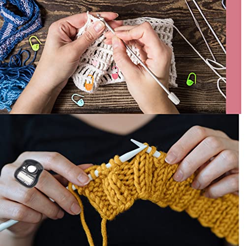 2 Pezzi di Mini Contatori da Dito Elettronici 100 Pezzi Segnapunti Uncinetto Marcatori a Spilla Colorati Segnapunti Maglia Set di Aghi per Uncinetto Tunisini Regalo per Donne/Mamma