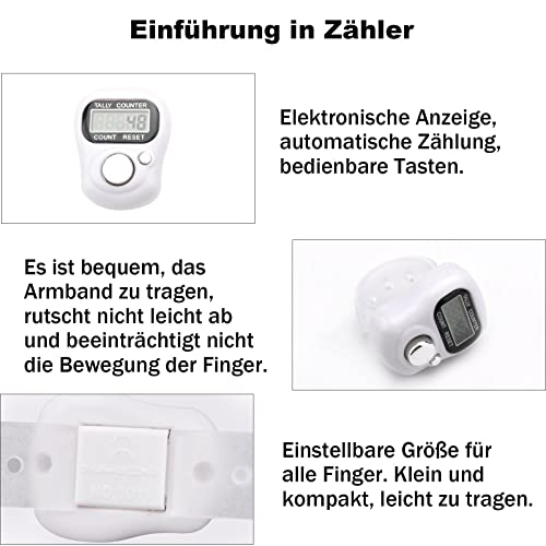 1.【Anelli per le dita regolabili】 questi counter per lavoro coi ferri e marcatori a spilla possono contare un intervallo di numeri da 0000-9999 e sono progettati con anelli per le dita regolabili, che non sono facili da staccare dalle dita;