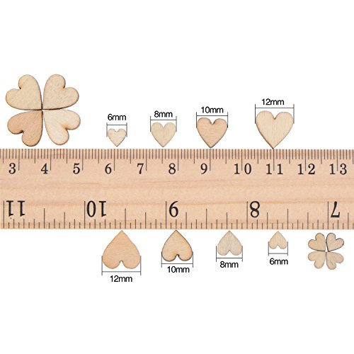 Multi dimensioni: questi cuori in legno sono disponibili in 4 diverse misure, 6 mm, 8 mm, 10 mm e 12 mm, e ogni pezzo di legno misura 3 mm di spessore, solo dimensioni sottili per i vostri progetti creativi.