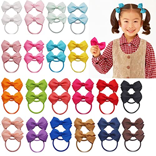 Offriamo 40 pezzi di piccoli fiocchi per capelli per coda di cavallo per ragazze, 20 colori diversi, ogni colore viene fornito con un paio.
