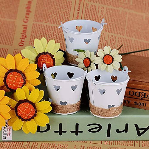8 Pezzi Mini Secchi Vasi, Mini Secchiello Caramelle, Mini Secchi Bomboniere, a Forma di Cuore Cavo, Anticorrosione, per Feste, Decorazioni, Casa, Matrimoni, Giardino, Festival(4 Colori)