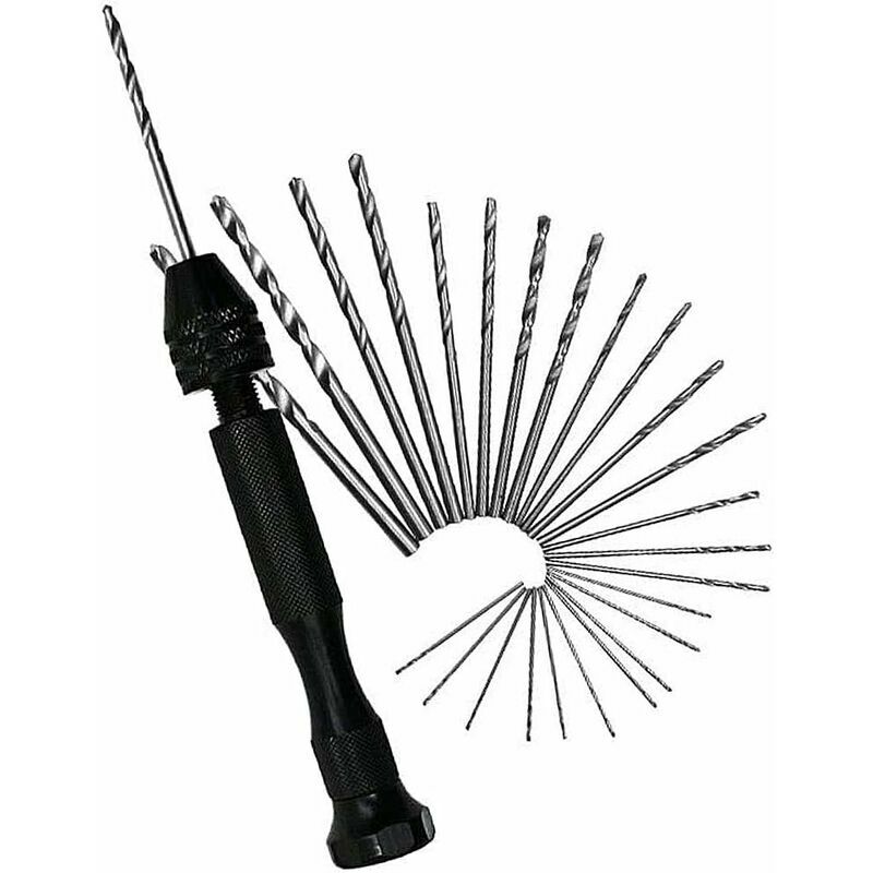 Il set di punte elicoidali include: 1 trapano a mano, 25 punte (5PCS*0.5MM/5PCS*0.6MM/3PCS*1MM/2PCS*1.2MM/2PCS*1.5MM/2PCS*1.8MM/ 2PCS*2MM /2PCS*2.35MM/2*3MM). Ampia applicazione: i trapani a mano in legno possono essere applicati su legno, gioielli, noci, ambra, cera d'api in pietra, olive, perline, PVC, acrilico e plastica, e molti altri progetti fai-da-te che richiedono una foratura precisa. Portatile: formato penna, facile da trasportare e riporre. 25 diverse dimensioni di punte da trapano possono soddisfare le tue diverse esigenze. DURATA - Il trapano è realizzato in acciaio temprato per garantire che sia pronto per tutti i lavori di hobby e precisione che puoi lanciare e gestire le tue costruzioni di precisione . Nota: le morse a perno regolabili sono utensili manuali, non utensili elettrici;