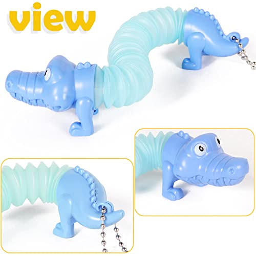 RILASCIABILE E PIEGABILE: il giocattolo sensoriale Pop Tubes ha la massima flessibilità, si contorce e attira in qualsiasi modo si desideri. La sua simpatica forma a cartone animato Triceratops,Sharks,Dolphins,Crocodiles è più attraente per i bambini e garantisce un gioco divertente e piacevole.