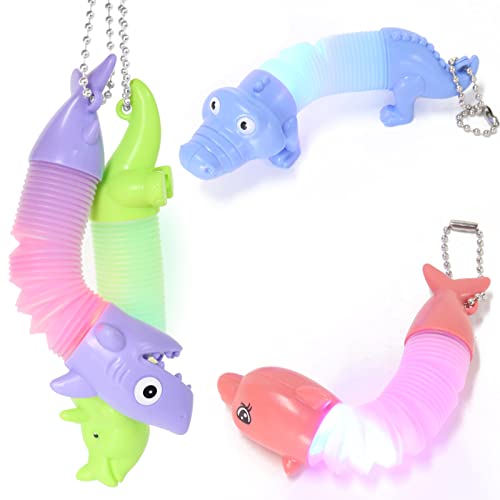 4 Pezzi Mini Tubi Pop Giocattolo Light-Up Sensoriali Pop Tubes, Fidget Toys per Adatto a Bambini,Ragazzi e Adulti, Alleviare l'ansia Giocattolo Educativo (Triceratops,Sharks,Dolphins,Crocodiles)