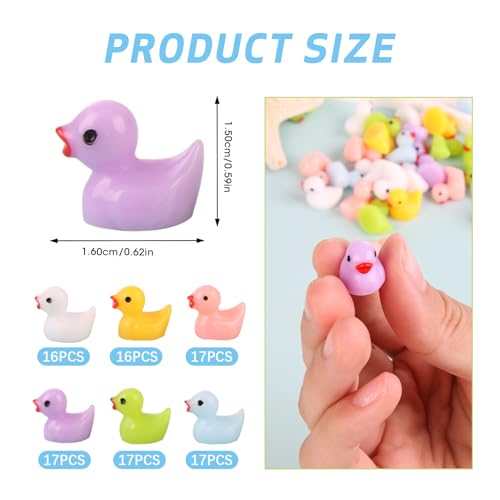 CONTENUTO DEL PRODOTTO: Riceverai 100 mini papere in resina in 6 colori: bianco, giallo, rosa, verde, viola e blu. Ogni colore 16 o 17 pezzi. Quantità sufficiente per l'uso quotidiano.