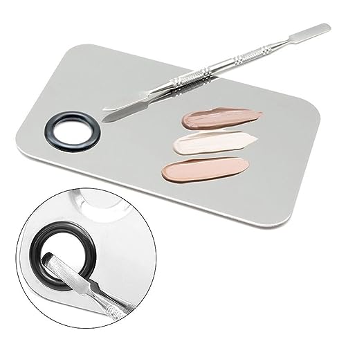 2 Pezzi Miscelazione Tavolozze Cosmetico Trucco Inossidabile Acciaio Con Spatola Professionale Trucco Miscelazione Strumento Trucco Fondotinta Art Nail Trucco Piastra (Argento)