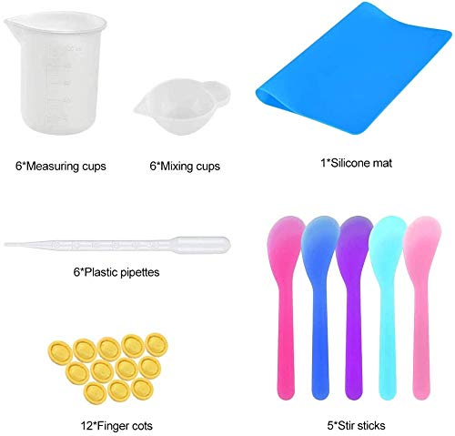 Kit di 36 Pezzi di Misurini in Silicone, 6 Pezzi 100ml Misurino Graduato in Silicone di Resina, 6 Pezzi 10ml Tazze di Miscelazione con 6 Pipette, per Tazze Graduate Stampi per Colata Resina Epossidica