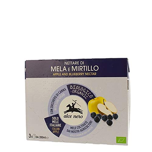 4 pezzi da ml200x3 nettare in brik bio alce nero - albicocca - pera- mirtillo - mela - possibilita' ordine misto (mirtillo)