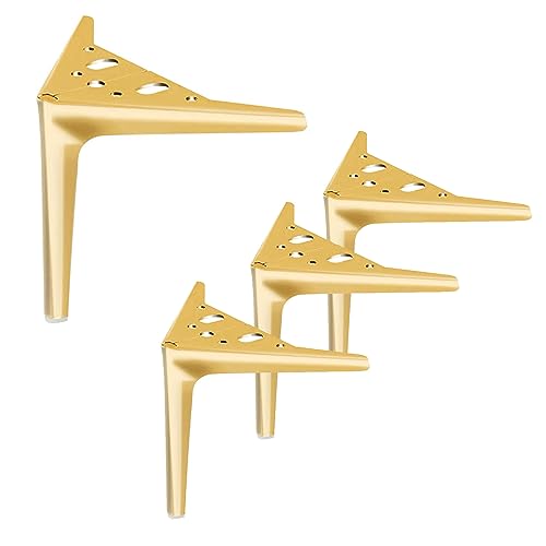4 Pezzi Oro Mobili Piedi,Piedini Mobili Triangolo,Piedini per Mobili in Metallo,Piedini Triangolari in Metallo,Gambe Ricambio Mobili DIY per Mobile/Divano/Tavolino/Mobili TV (10cm/3.9in)