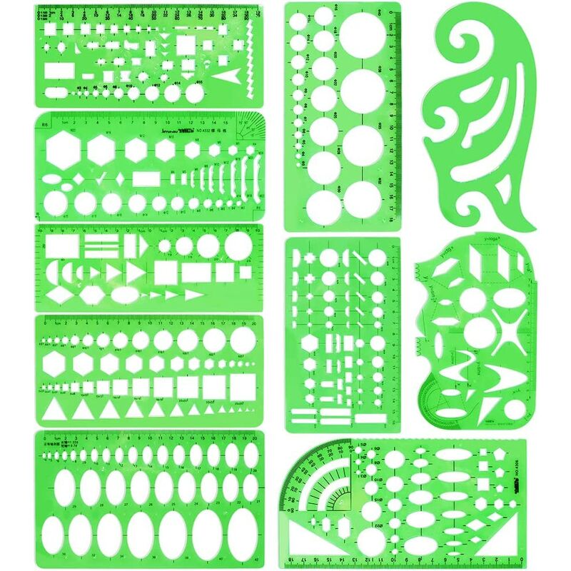 Modello di disegno professionale 11 set (completi), realizzati in plastica di alta qualità, resistente, non facile da rompere, gli angoli del righello sono progettati con curvatura, non è facile ferirsi le mani, il righello utilizza un verde più chiaro, completare il set soddisfa tutte le esigenze di disegno. ★ Contiene: modello di disegno circolare di dimensioni multiple, modello di disegno di dimensioni multiple, modello di ellisse, modello di disegno multifunzione, modello di disegno geometrico, modello di apprendimento della matematica, modello di costruzione di modelli di dado, rete di modelli modello tecnologico, modello di curva del modello meccanico. ★ Ampiamente usato: questi modelli sono adatti per la progettazione architettonica, la geometria matematica, le illustrazioni, la misurazione del punteggio, la progettazione di gioielli, la progettazione meccanica, il disegno di informazioni elettroniche, ecc. Ogni righello ha modelli e scale diverse per soddisfare le tue