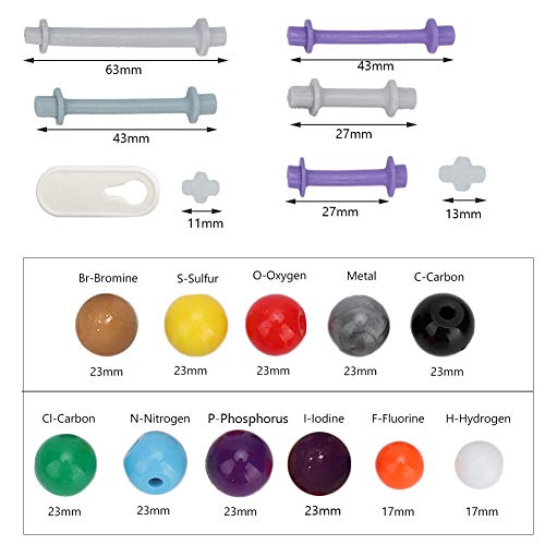 ★ Caratteristiche: questo kit modello di chimica contiene 116 atomi, 150 collegamenti e uno strumento di collegamento 1x per fornire agli studenti un'esperienza visiva e pratica per l'apprendimento delle strutture molecolari di chimica.È stato progettato per rendere più facile e divertente la chimica organica.