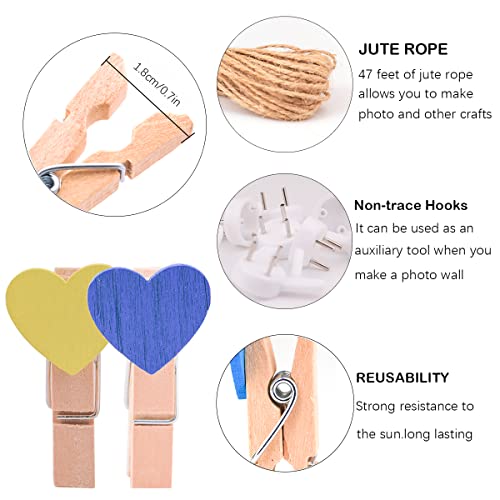 [Multifunzionale] - La molletta in legno può essere utilizzata come una comune clip per l'uso quotidiano, può anche essere utilizzata per realizzare pareti fotografiche o lavori di pittura per abbinare i chiodi senza tracce e la corda di canapa. Inoltre, può essere utilizzato come segnalibro.