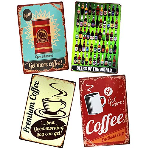 4 pezzi Get More Coffee Vintage metallo segni di latta Coffee Shop Wall Decor (B)