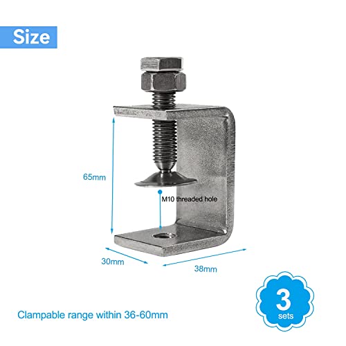 3 Pezzi Morsetti a C Resistenti,65mm Morsetti per Morsetti a c Inossidabile 304, Resistente Morsetto Di Apertura Grande, con Apertura a Mascella, per Scrivania e Tavolo da Lavoro