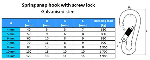 5 pezzi Moschettone con fusibile 5mm | Acciaio C15, zincato secondo le norme di qualità DIN 5299 C | Moschettoni in acciaio zincato Accessori per funi fune | [ DQ-PP ]