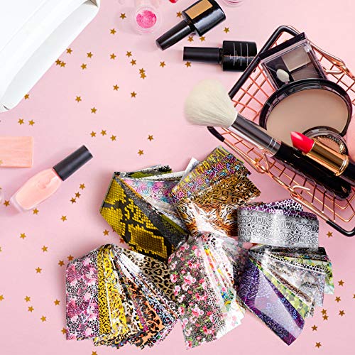 100 pezzi Motivi Misti Nail Foil Transfer Stickers Set, EBANKU Stampa Serpente Leopardata Adesivi Unghie Trasferimento Adesivo Decalcomanie Holographic Nail Stickers Decorazion